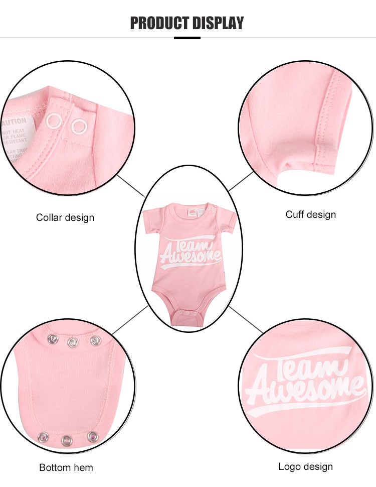 baby onesies easy for small baby to wear, lovely pink colors with white printing in front , 2 buttons on the neck  ,it suit for bigger baby like 12 month, custom the baby clothes in high quality comed ringspun cotton fabric, which soft and comfortable, active color to protect baby.