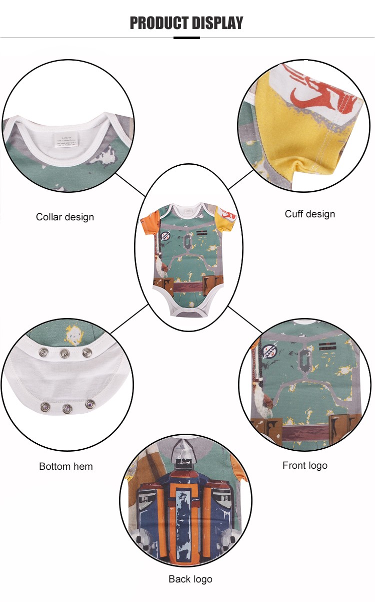 High quality baby onesuit with 100% combed cotton ,  Digital printing,without rubber feeling ,colorful design, soft,breathable printing , that would be a hot sale  baby clothes online, Class envelope design, 3 bottom buttons,we can custom any logo as you need.