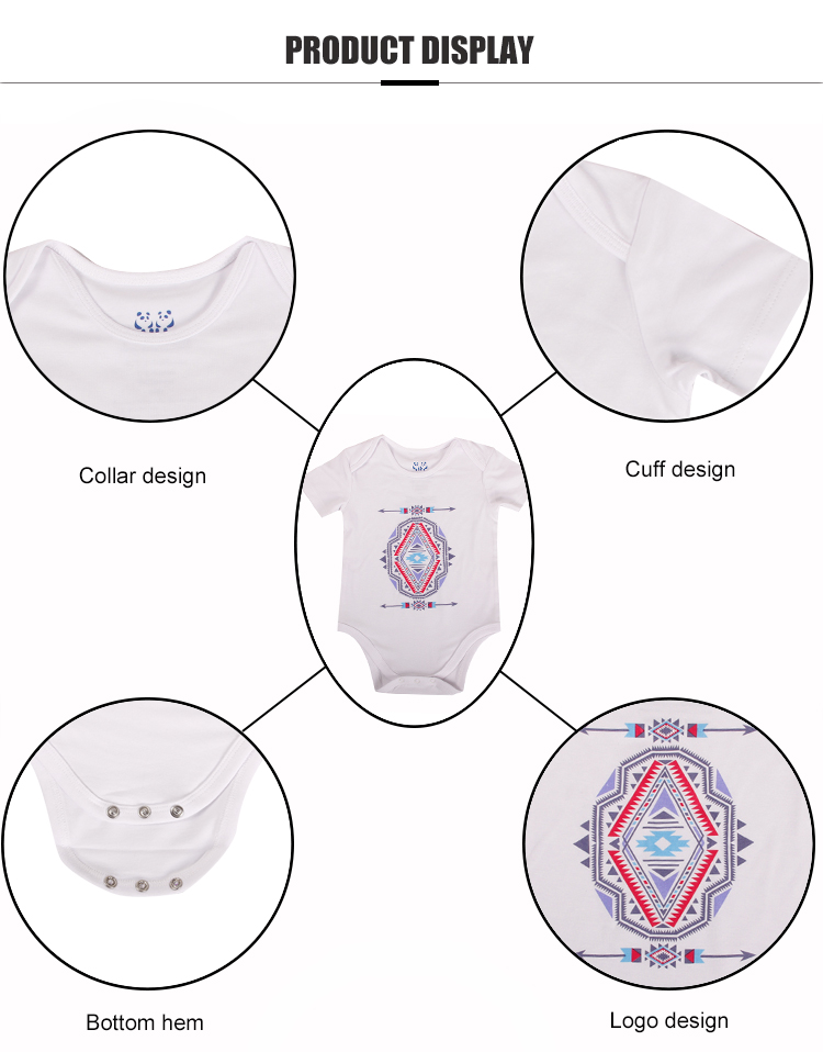 Cute short sleeves baby boy clothes with envelope neck, 3 bottom buttons,Class design. With simple printing in front,  Ages from  0 month to 24 months,you can custom logo and size as you need,  there is various material ,100%cotton, bamboo, organic ect  and  colors for your choosing .