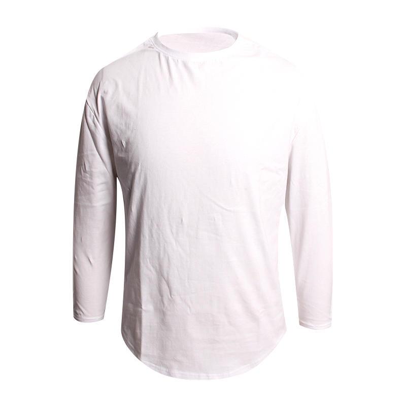 white plain blank long sleeve t shirts, round neck,3/4 sleeves,100%cotton fabric, mixed sizes from XS-XXXL.