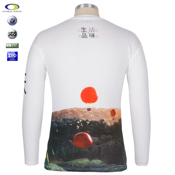 男士秋季员工服白色长袖圆领印花T恤 |