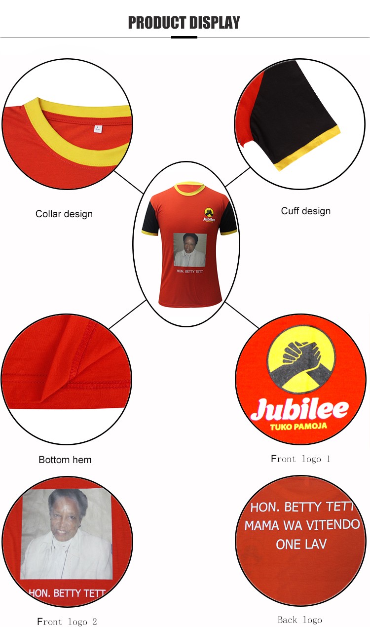 This vote for me t shirt is an election T-shirt from Kenya in 2017. It is printed with the head of hon betty tett, yellow collar and cuffs, and short sleeves are black. We have made 2 kinds of this style. The difference lies in whether there is a background behind the head of Hong Betty. This one has a background. Although our clothes are well made, the current president is not her.