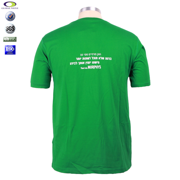 广告宣传绿色男士V领印花T恤,前后幅高品质环保丝网印logo,高性价比精梳棉 吸湿透气 不起球、吸湿保暖、天然亲肤、环保染色 经典短袖时尚V领款式 。