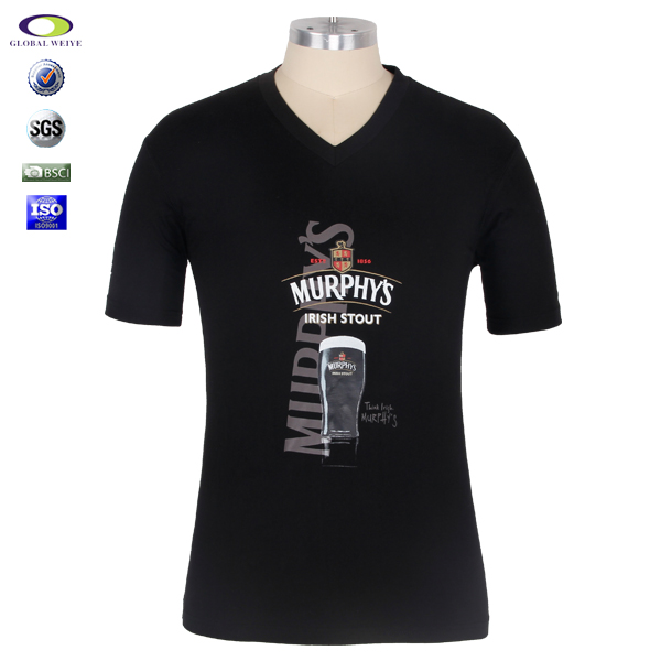 广告宣传黑色男士V领印花T恤,前幅高品质环保丝网印logo,高性价比精梳棉 吸湿透气 不起球、吸湿保暖、天然亲肤、环保染色 经典短袖时尚V领款式 。