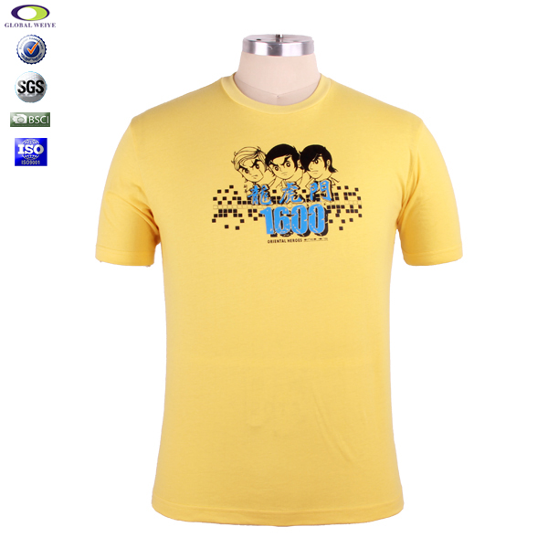 广告宣传黄色男士圆领印花T恤衫定做
