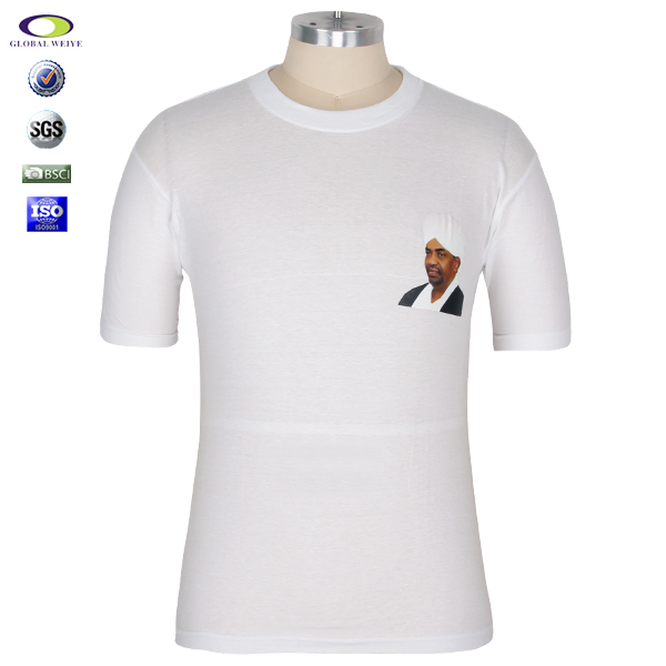 广告宣传白色男士圆领印花T恤衫,胸前高质量丝网印人头像,后幅高质量丝网印logo,高性价普通棉纱 吸湿透气 不起球、吸湿保暖、天然亲肤、环保染色 经典短袖时尚圆领款式 。