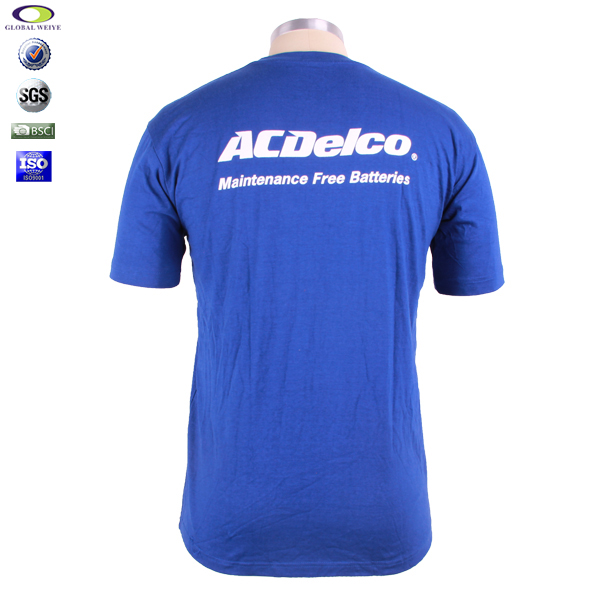 团体服饰蓝色男士圆领印花T恤衫,前后幅高质量印花图案,高性价普通棉纱 吸湿透气 不起球、吸湿保暖、天然亲肤、环保染色 经典短袖时尚潮流圆领款式 。
