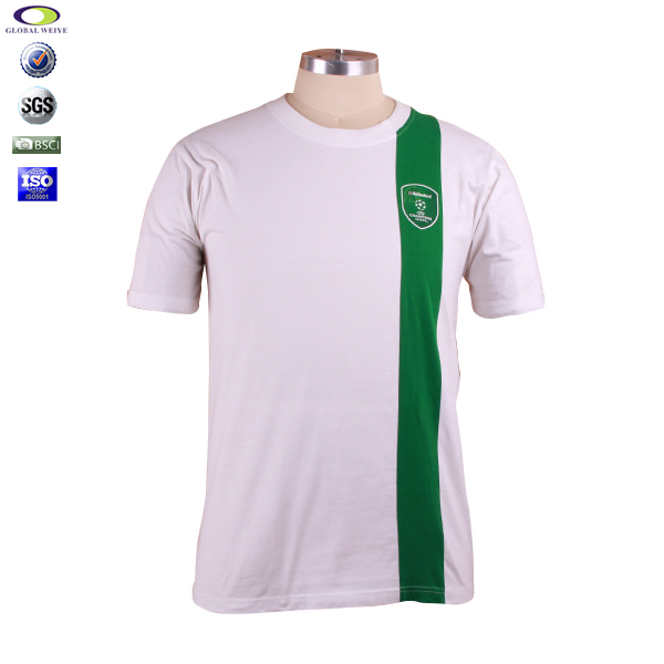 广告宣传男士白绿拼接圆领印花T恤衫 |