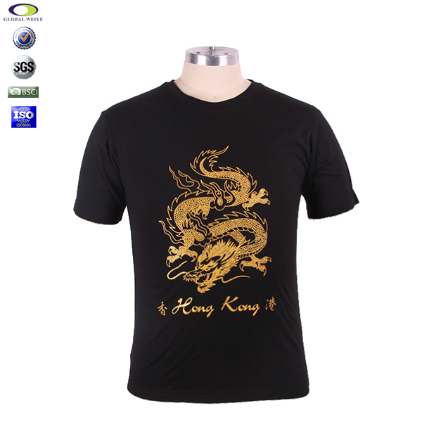 广告宣传纪念男士黑色圆领印金恤衫定制