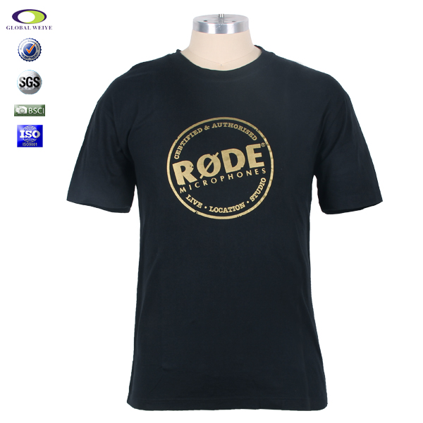广告宣传黑色男士圆领印金T恤衫定做