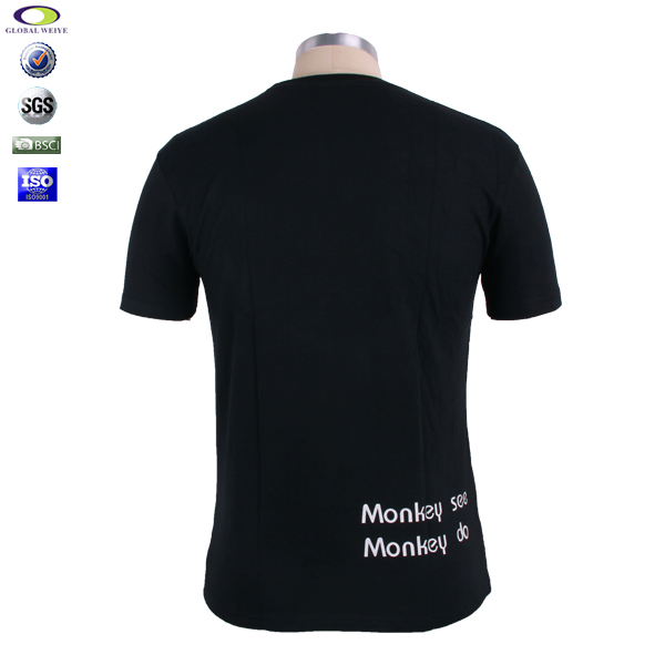 广告宣传黑色圆领印花T恤衫,胸前高质量猴子印花,高性价比棉纱   吸湿透气  不起球、吸湿保暖、天然亲肤、环保染色 经典短袖时尚圆领款式 。