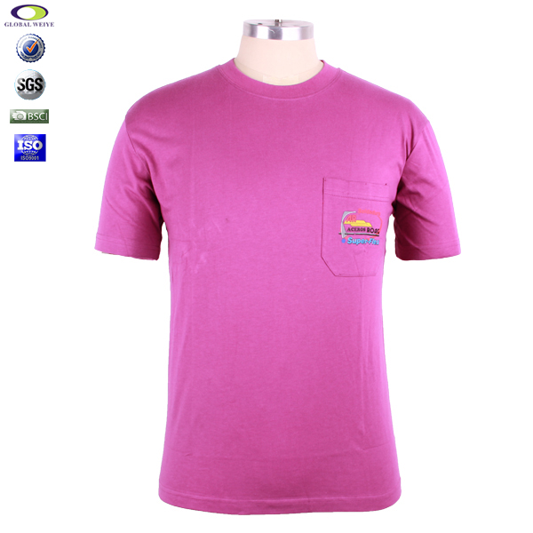 男士玫红色口袋宣传衫印花圆领短袖团队工作服,左胸口袋高质量丝网印logo,高性价比精梳棉   吸湿透气 不起球、吸湿保暖、天然亲肤、环保染色,经典短袖圆领款式,突显时尚魅力。