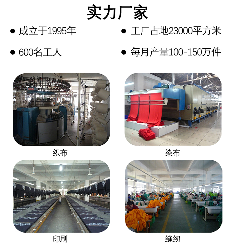 主营: 品牌品质 T恤衫 、Polo衫、运动服、童装、卫衣、棉纱、针织面料等。占地23000平米工厂,拥有700台设备、600个工人、全球最快的交货能力。我司专注 T恤衫定做 20+年,产品畅销国内外,全国34省、全球106个国家见证,全球品牌严选供应商。
