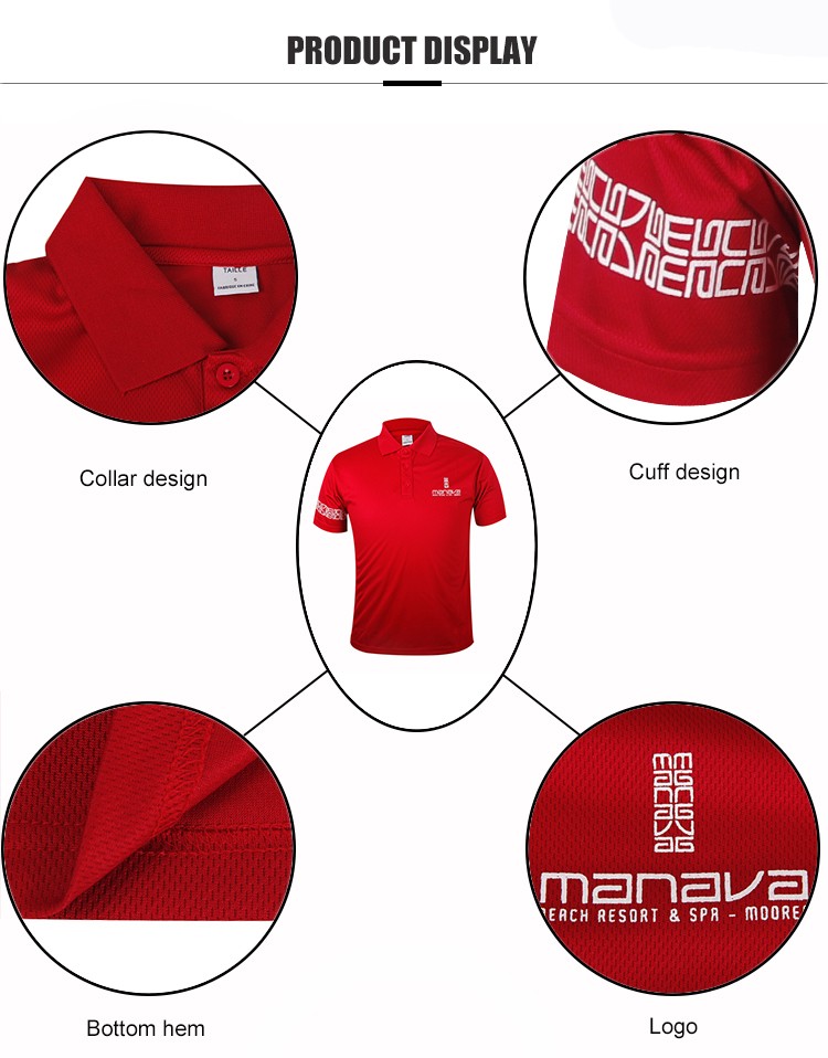 男士印花速干Polo衫定制,采用100%涤纶速干网眼布料,透气快干、柔软,不褪色,防霉抗菌等功能,中国红布料印企业logo,环保不掉色。