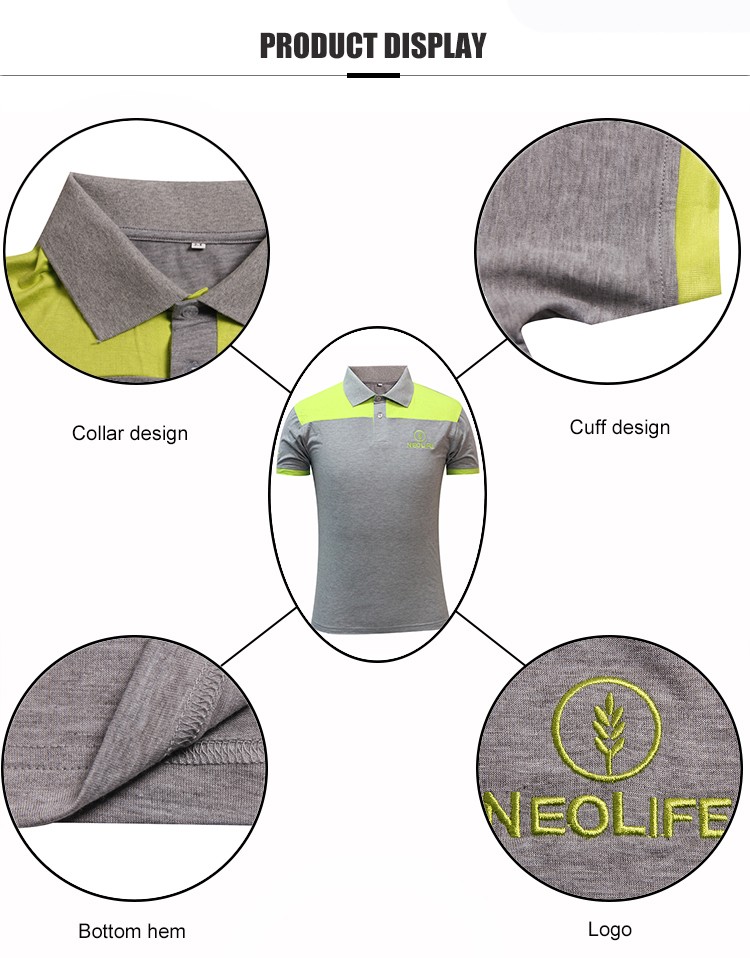 灰色Polo工作服定制绿色袖口翻领衫绣花logo |