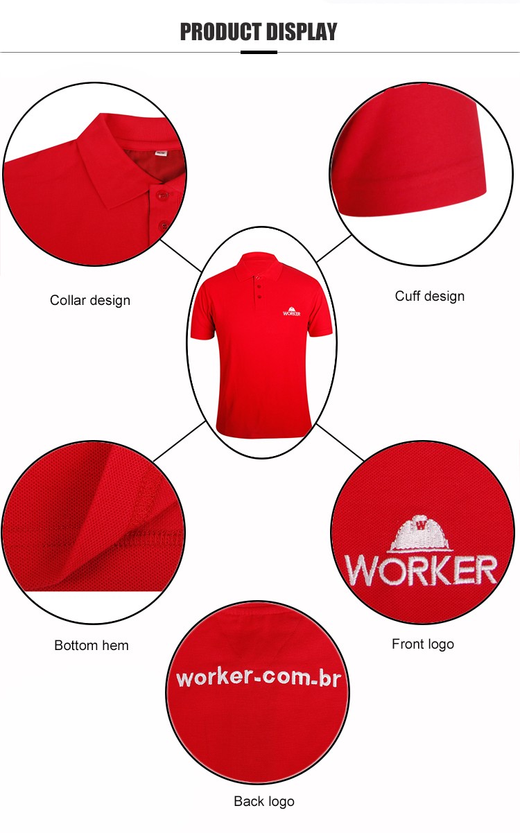 员工工服中国红全棉polo衫订制企业绣花logo |