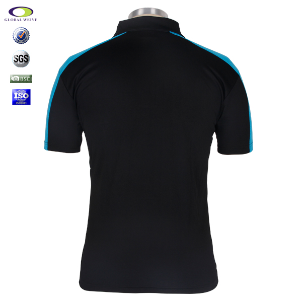 时尚撞色POLO衫,采用100%涤纶网眼快干布料,透气速干、面料光亮,柔软,不褪色,防霉抗菌等功能,加上黑色蓝色白色三色拼接撞色设计,突显时尚魅力,常适用于运动时尚休闲类场合!