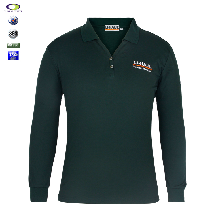 长袖POLO衫,采用65%精棉35%涤纶CVC布料,透气、柔软,亲肤,舒适等功能,高品质绣花logo。