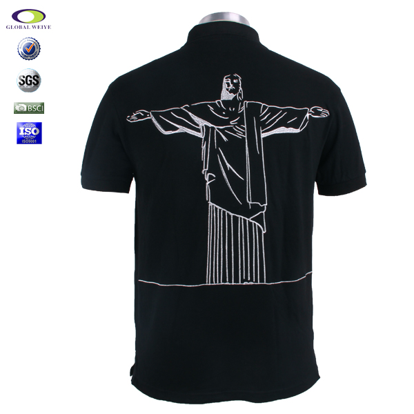 黑色POLO衫,采用精梳全棉布料,耐磨抗皱不起球、吸湿保暖、天然亲肤、环保染色,精密裁剪修身合体,定制高品质银线绣花,艺术图案。