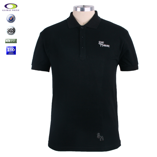 工厂定制高档polo衫男银线刺绣高端黑色商务装