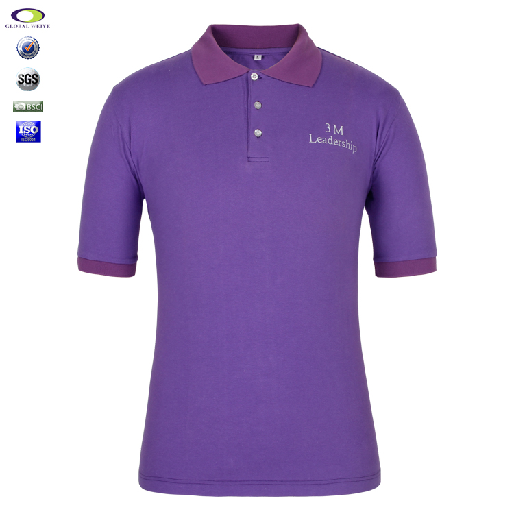 100%棉紫色翻领T恤衫工厂定制3M绣花polo衫男装 |