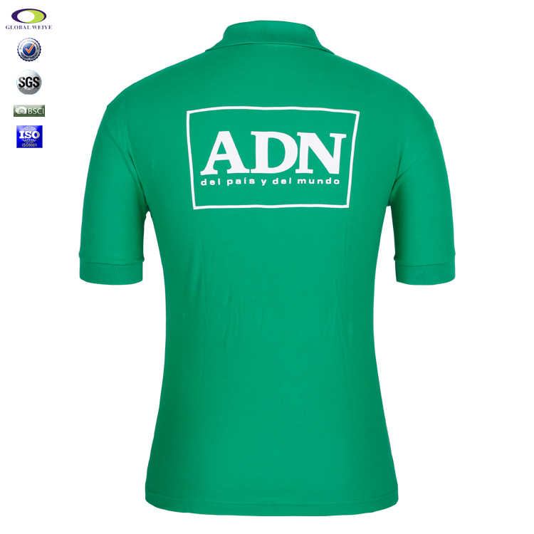 绿色POLO衫,采用精梳全棉布料,耐磨抗皱不起球、吸湿保暖、天然亲肤、环保染色,专业纸样,精密裁剪修身合体,定制印花,采用环保颜料,不掉色。