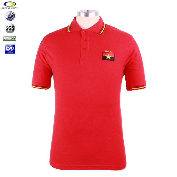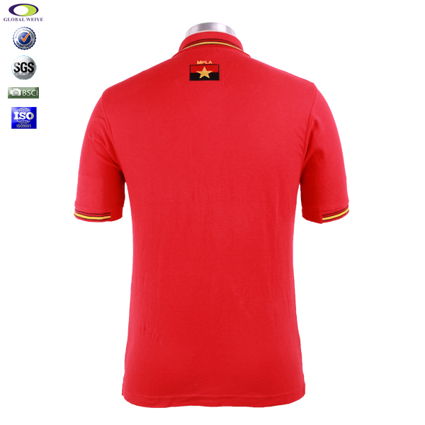 定制非洲红色polo衫男士短袖条纹色织领 |