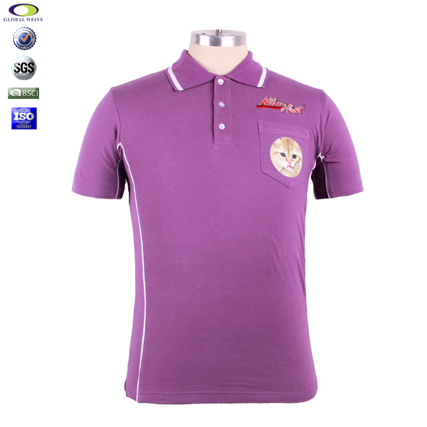 全棉紫色polo衫男装定制口袋烫画logo |