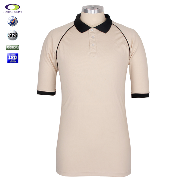 男士全涤空白运动插肩黑色领杏色POLO衫翻领短袖T恤衫定制厂家 |