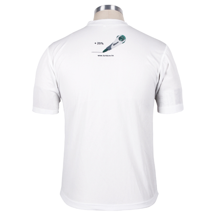 男士白色全涤圆领绣花短袖T恤衫广告衫,采用全涤速干面料,舒适耐穿,高性价比,胸前绣花logo,后幅高质量丝网印  专业纸样 标准裁剪,经典短袖时尚圆领款式。