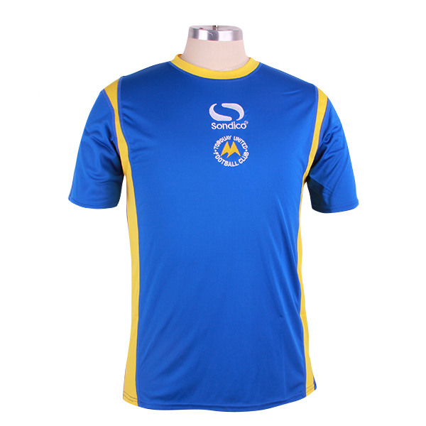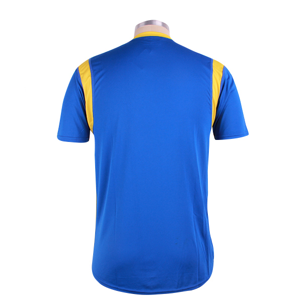 男士蓝色全涤插肩拼接印花T恤圆领短袖运动服,采用全涤速干面料,舒适耐穿,高性价比,高品质丝网印logo 专业纸样 标准裁剪,经典短袖时尚圆领款式。