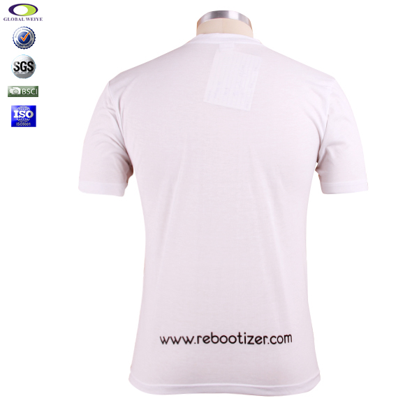 白色男士V领T恤,棉涤混纺布料,拥有接近纯棉的轻柔手感和舒适度,吸湿透气性好 ,经典短袖款式,前幅后幅环保丝网印logo