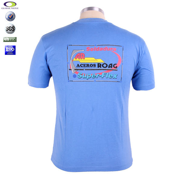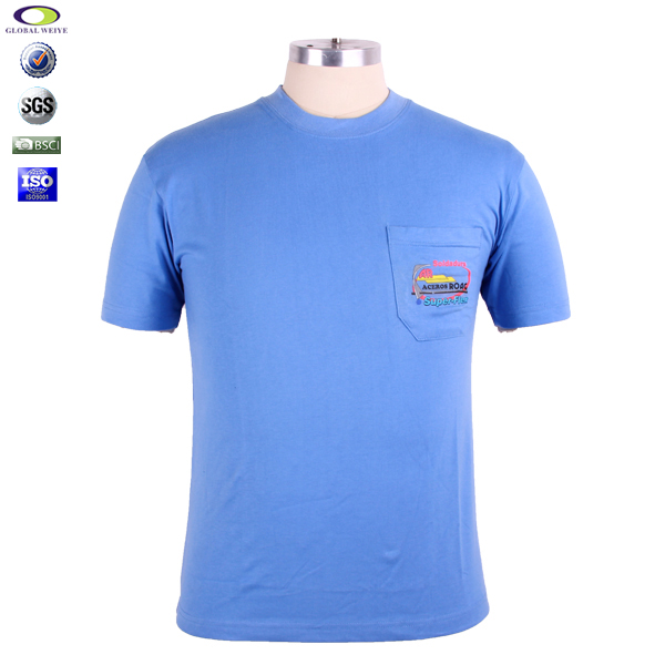 男士纯棉蓝色圆领口袋T恤印花logo |