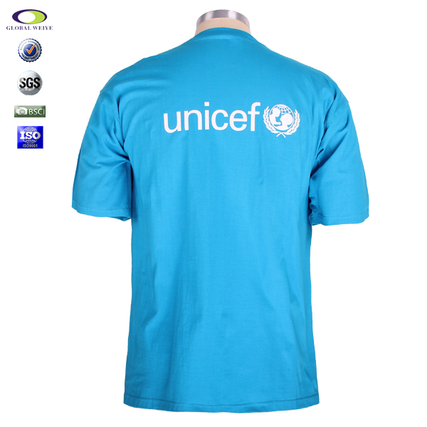 公益活动男士纯棉蓝色圆领T恤印花logo,高性价比精梳棉   吸湿透气 不起球、吸湿保暖、天然亲肤、环保染色,经典短袖圆领款式,特色口袋设计,环保丝网印logo