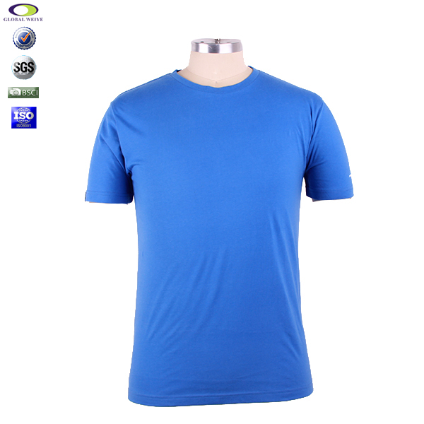品牌男士纯棉蓝色圆领T恤印花logo |