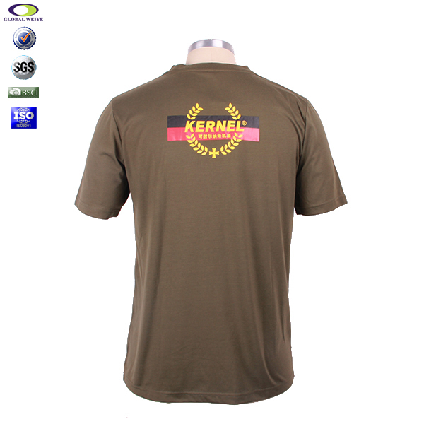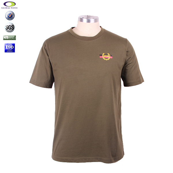 军绿色员工T恤圆领短袖前后印花,精梳全棉、 耐磨抗皱不起球、环保染色,经典短袖圆领款式,专业纸样, 环保丝网印logo