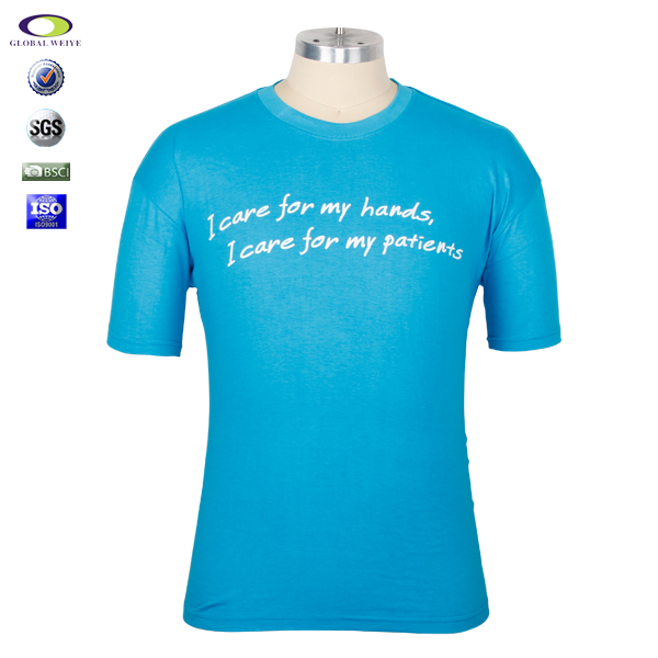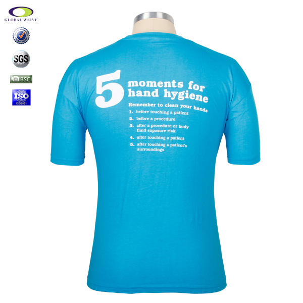 男士圆领广告宣传印花蓝色T恤,高档环锭纺棉、 柔软贴身、  吸湿透气  、天然环保、  柔软舒适,常规圆领 经典短袖 牢固丝网印logo 标准裁剪