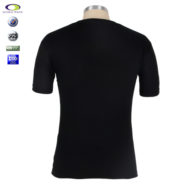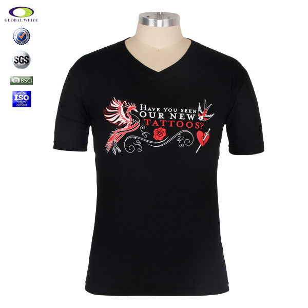 环保丝印男士V领短袖黑色T恤 |