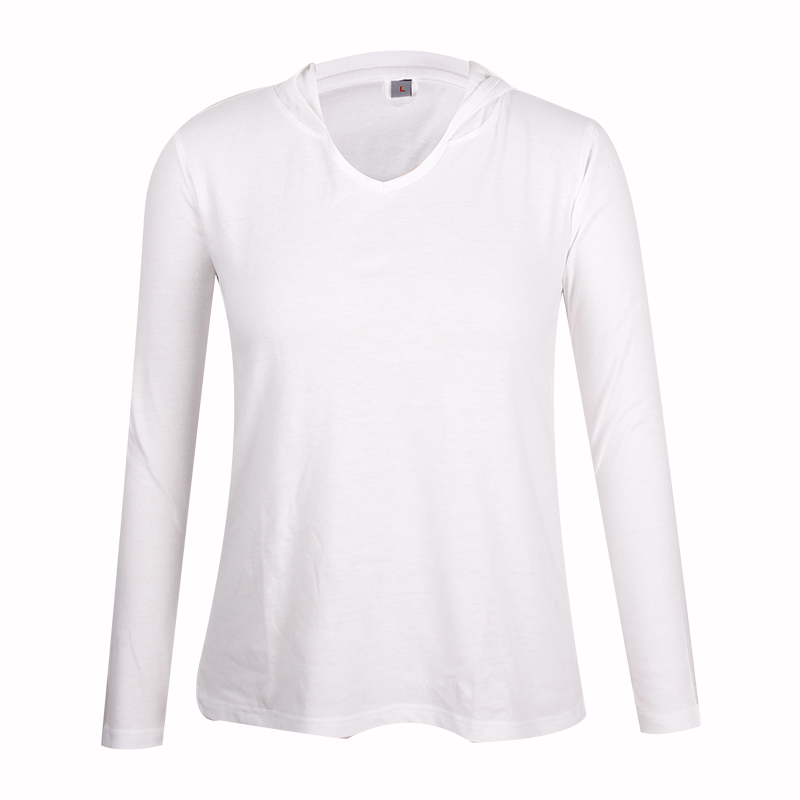 白色长袖带帽100%棉空白T恤 |