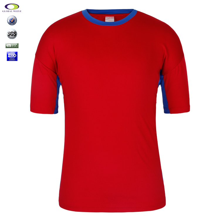 定制男士红色异色领空白网眼短袖T恤衫定制厂家 |