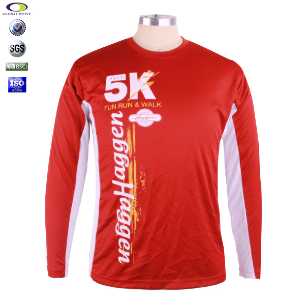 定制男士红色全涤圆领印花长袖运动服T恤衫定制厂家