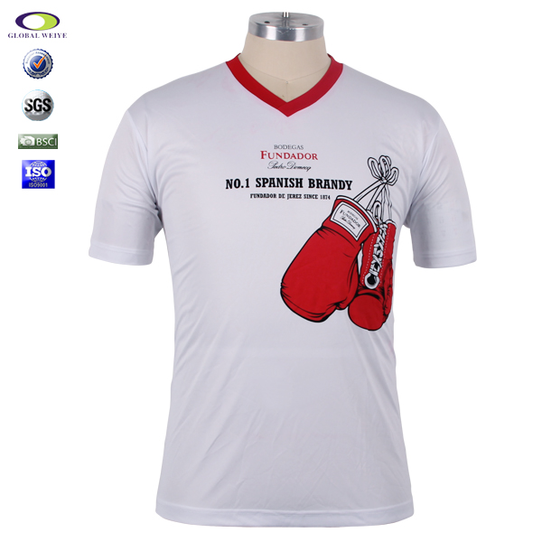 定制男士全涤V领白色印花宣传短袖T恤衫定制厂家