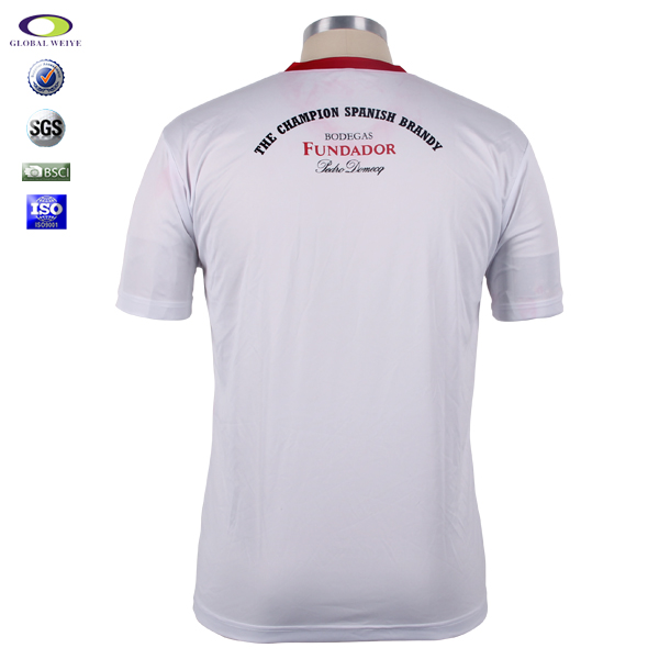 男士全涤V领白色印花宣传短袖T恤衫,采用全涤速干面料,舒适耐穿,高性价比,前后幅高品质环保丝网印logo,  专业纸样 标准裁剪.