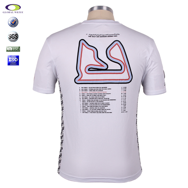 定制男士白色全涤圆领印花宣传摩托车赛短袖T恤衫定制工厂