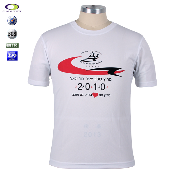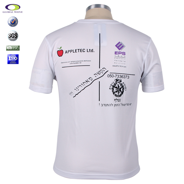 男士白色圆领全涤运动宣传印花短袖T恤衫订制厂家 |