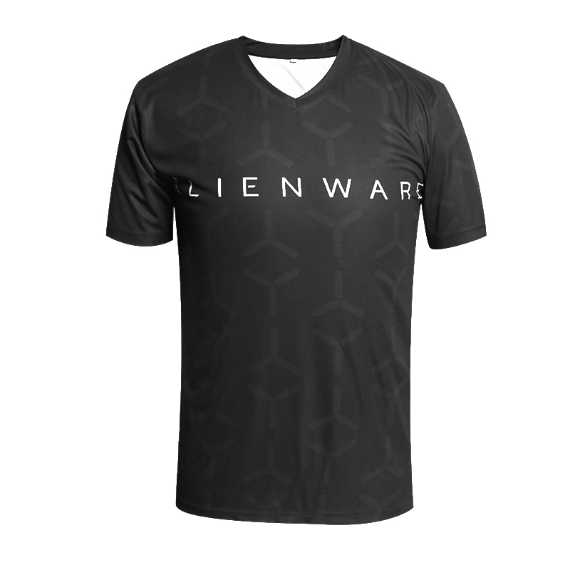 男士黑色全涤字母印花V领短袖恤衫定制厂家