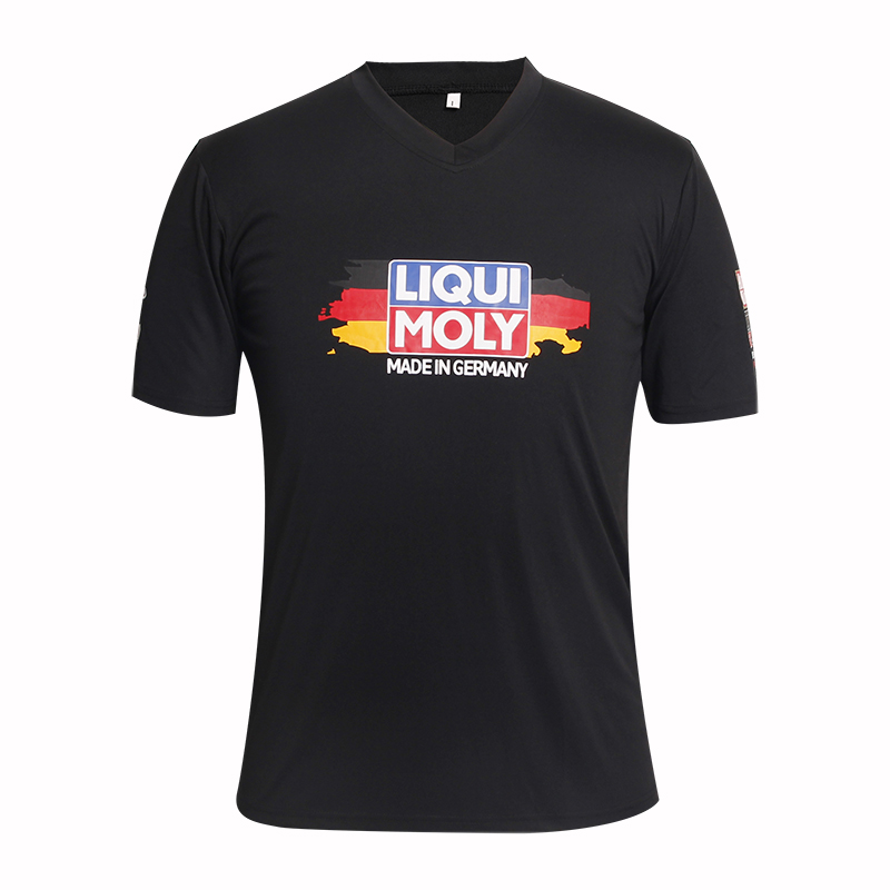 男士黑色全涤字母印花V领短袖T恤衫,采用全涤速干面料,舒适耐穿,高性价比, 专业纸样 标准裁剪,前后幅丝网印logo 经典短袖时尚V领领款式。