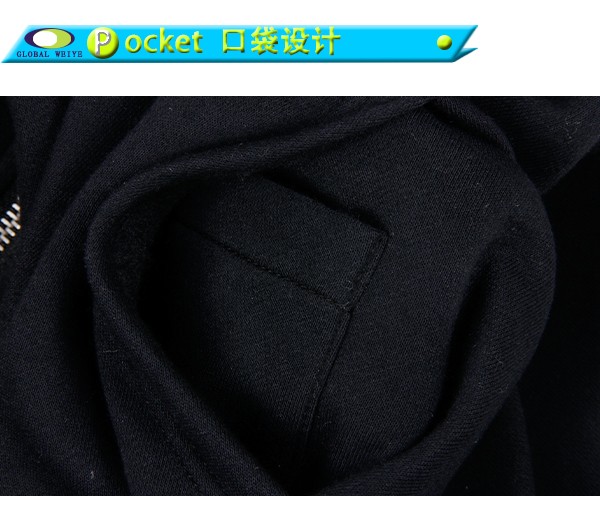 This Black Zip Up Hoodie mens,  and produced in 2016, was custom-made by our guests here, with applique logo, rib hem and intimate thumb sleeve design. Zippers can be adjusted freely with the weather.