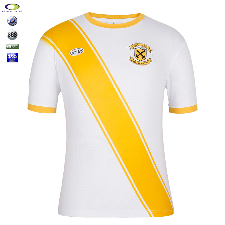 男士圆领短袖印花运动衫,100%涤,夏季薄款全涤布料,适中厚度,柔软透气,穿上轻松自在。黄色斜杆印花,前胸精致刺绣设计,效果逼真。