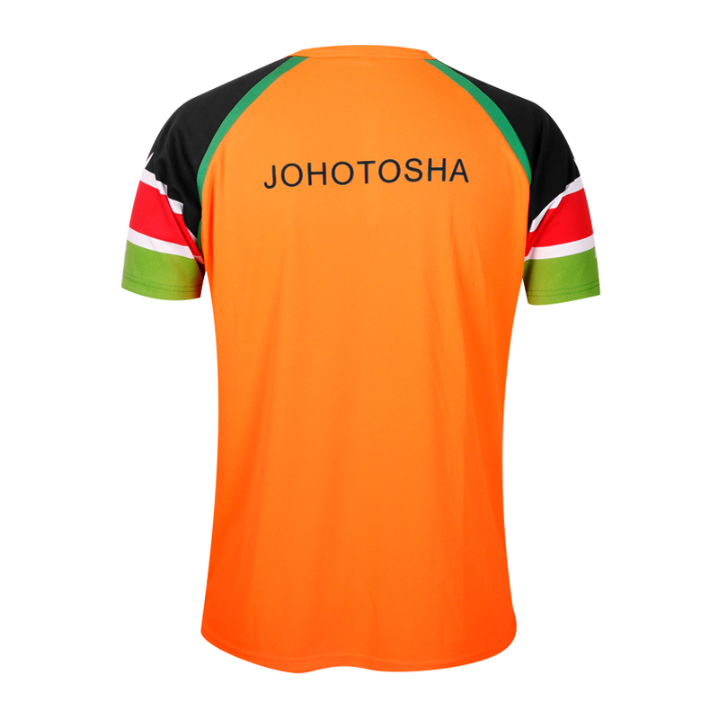 男士插件Y领印花短袖全涤网眼运动衫